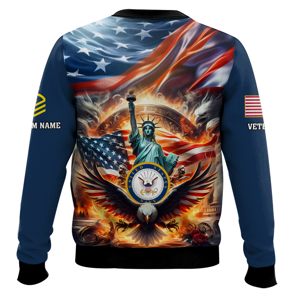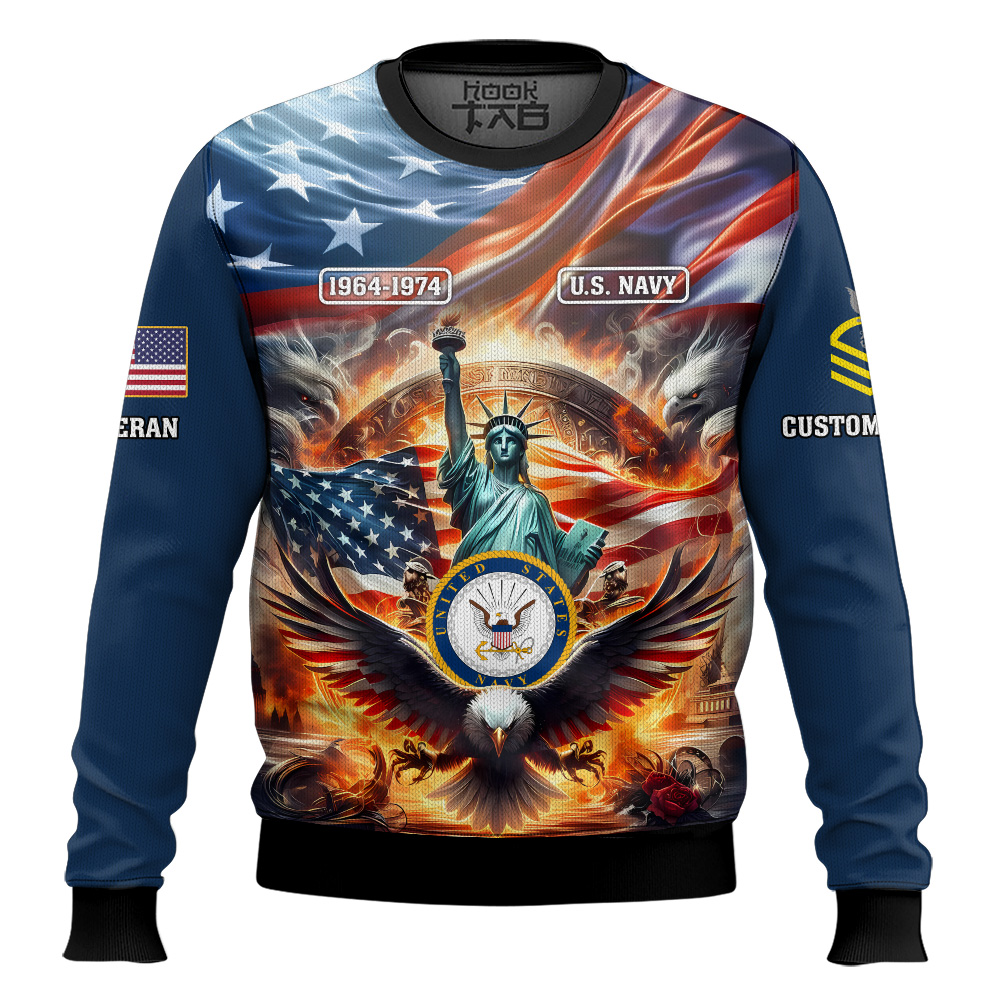 Hooktab US Navy Liberty Eagle – Custom Name, Rank And Years Of Service Ugly Sweater