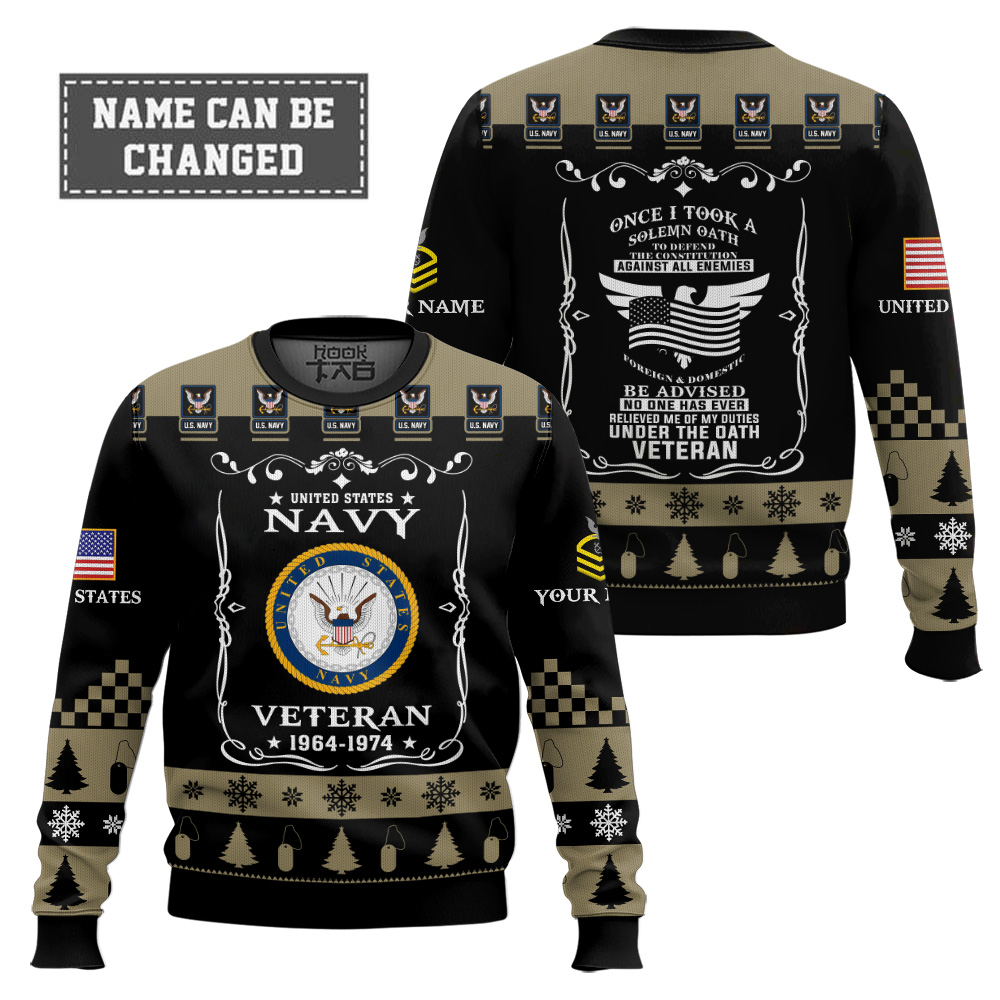 Hooktab US Navy Once I Took a Solemn Oath – Custom Name And Rank Ugly Sweater