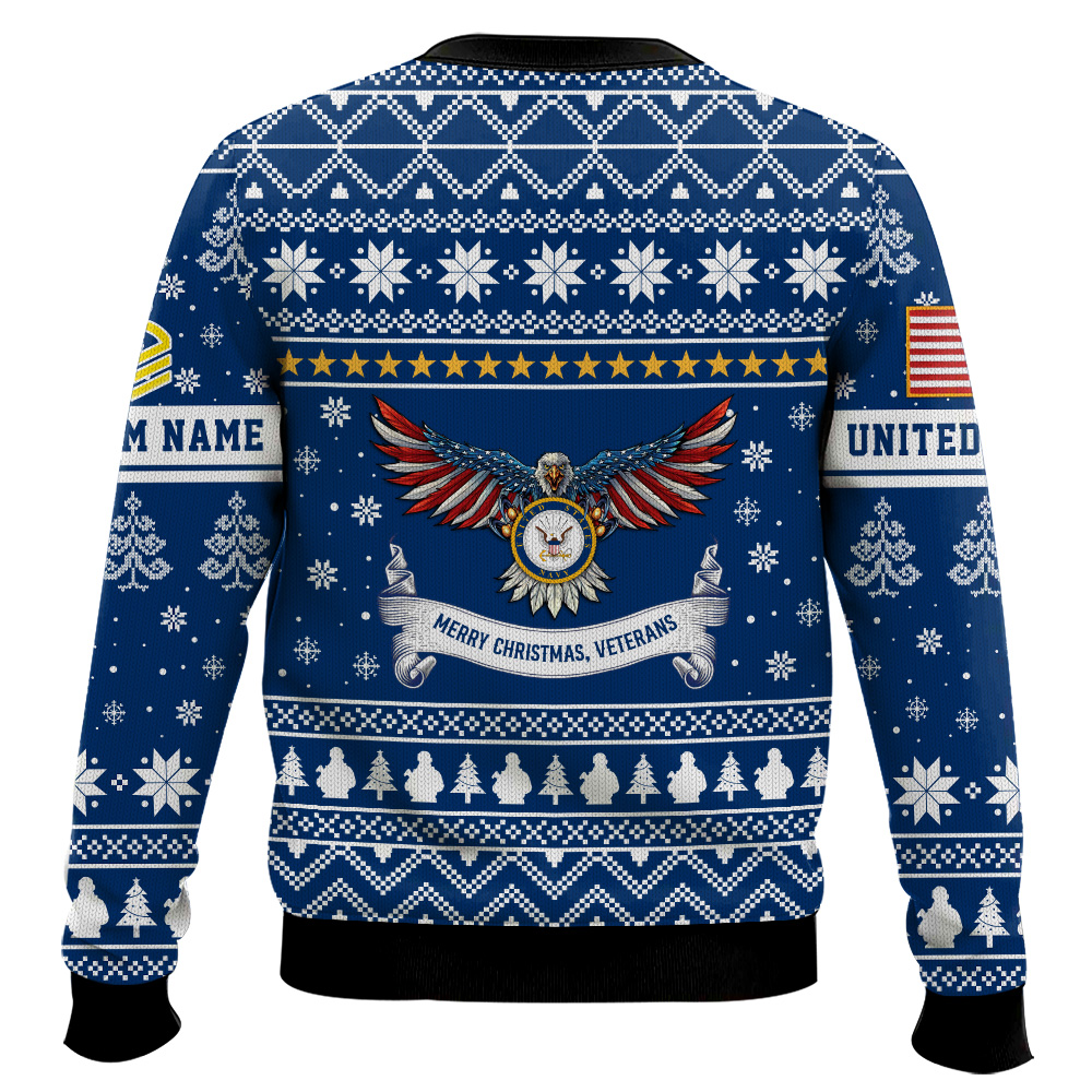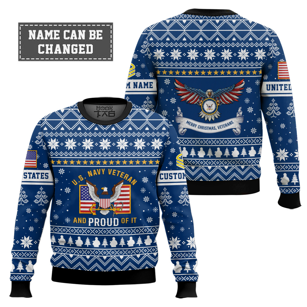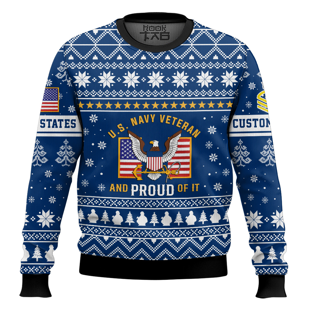 Hooktab US Navy Proud Veteran – Custom Name And Rank Ugly Sweater