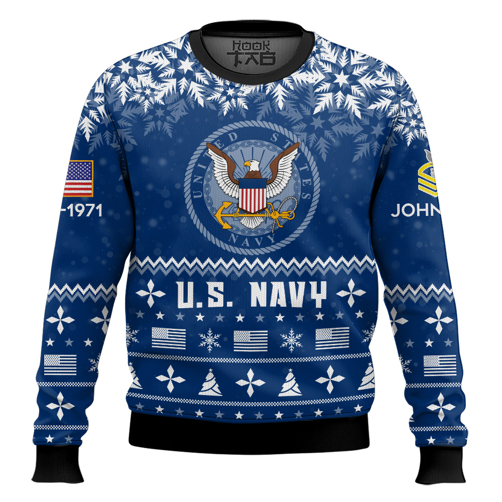 Hooktab US Navy Remember-Honor-Respect – Custom Name, Rank And Years Of Service Knitted Sweater Ugly Sweater