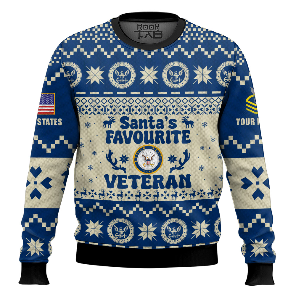 Hooktab US Navy Santa’s Favourite Veterans – Custom Name And Rank Ugly Sweater
