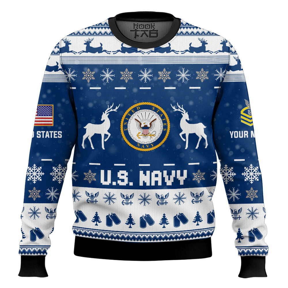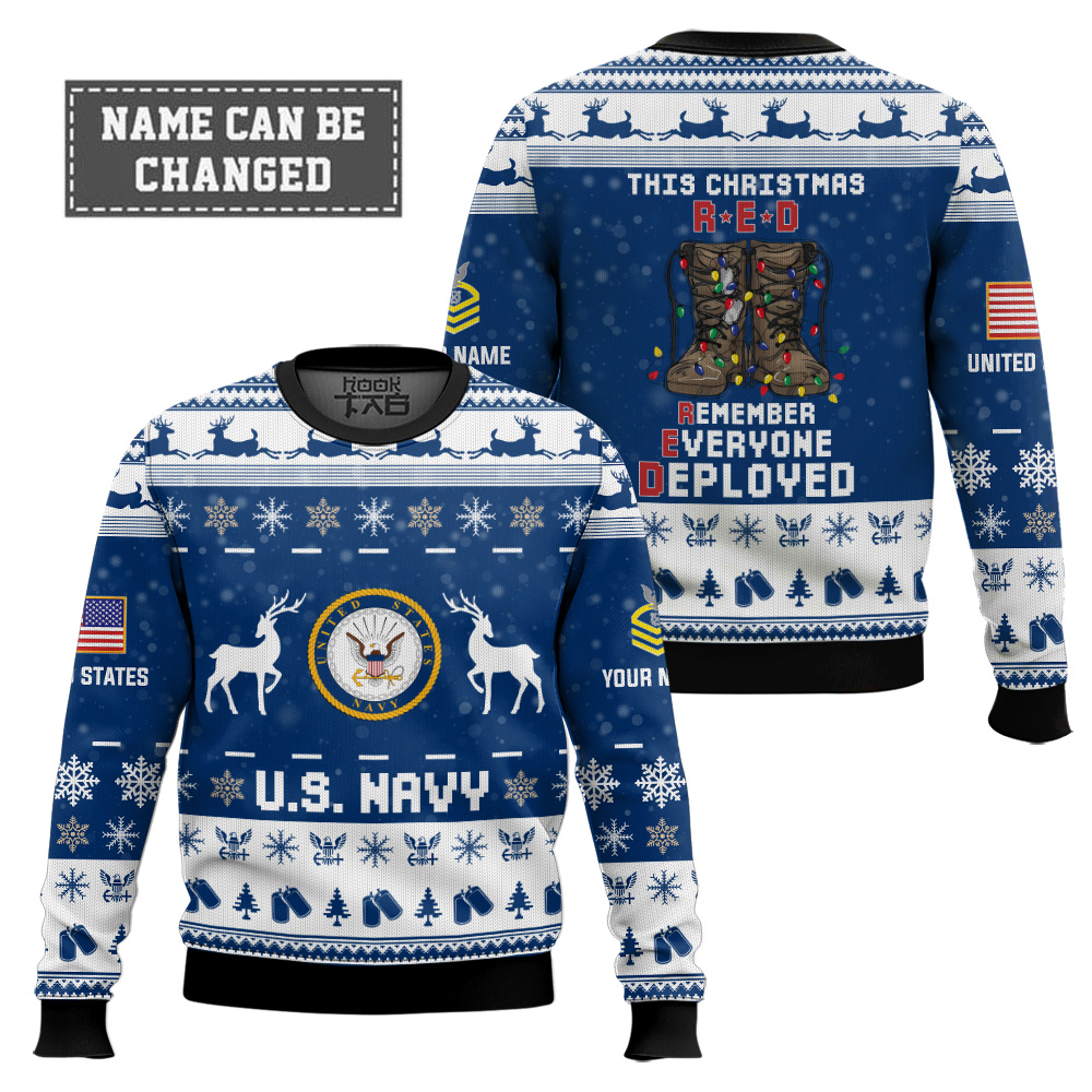 Hooktab US Navy This Christmas R.E.D – Custom Name And Rank Ugly Sweater