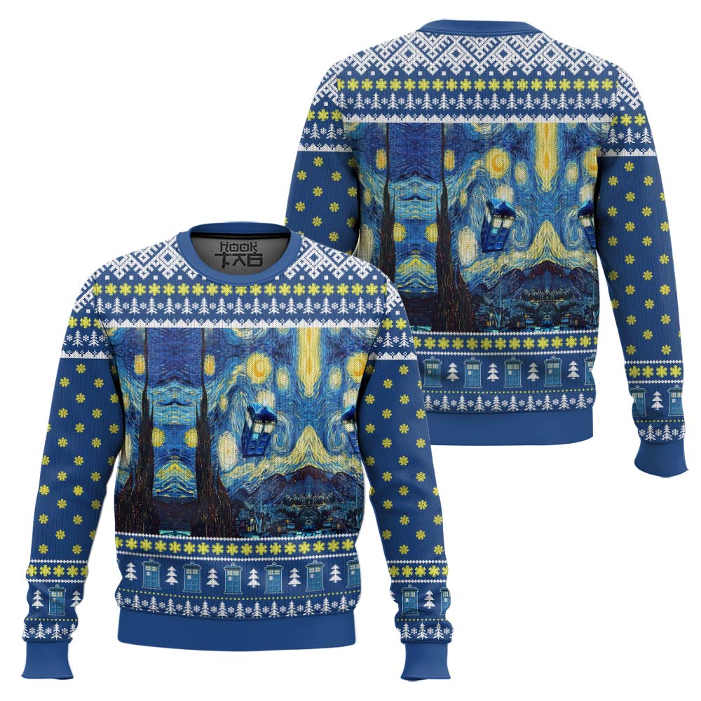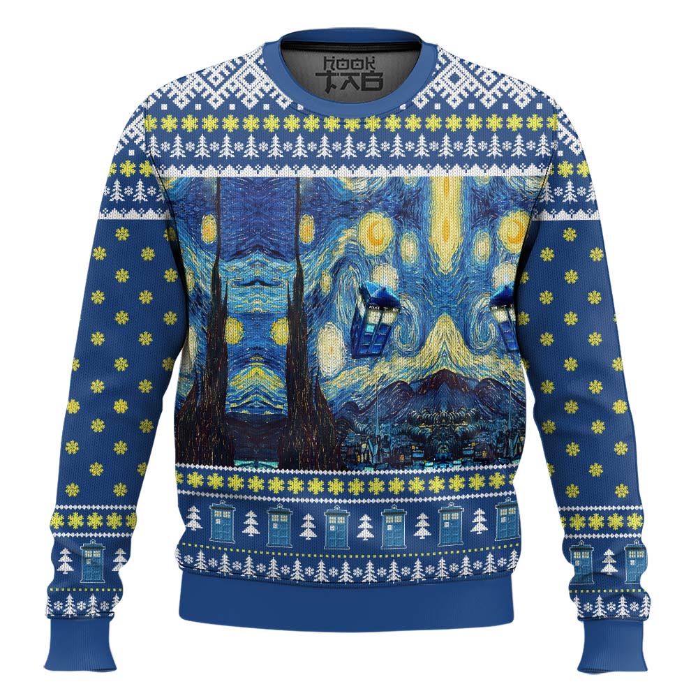 Hooktab Vangogh Starry Night Doctor Who Ugly Christmas Sweater