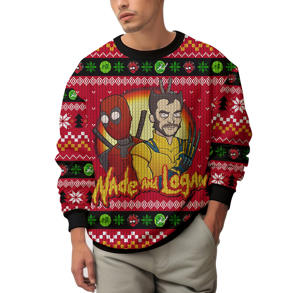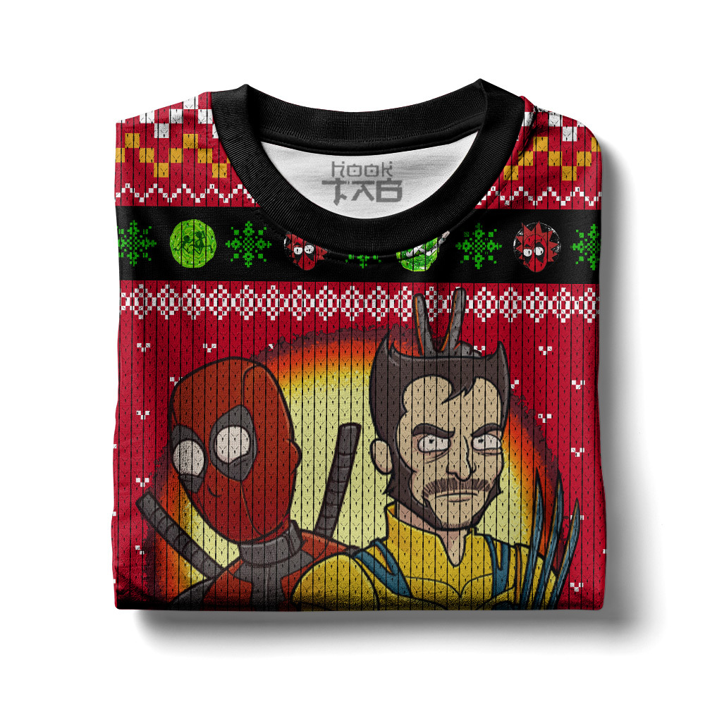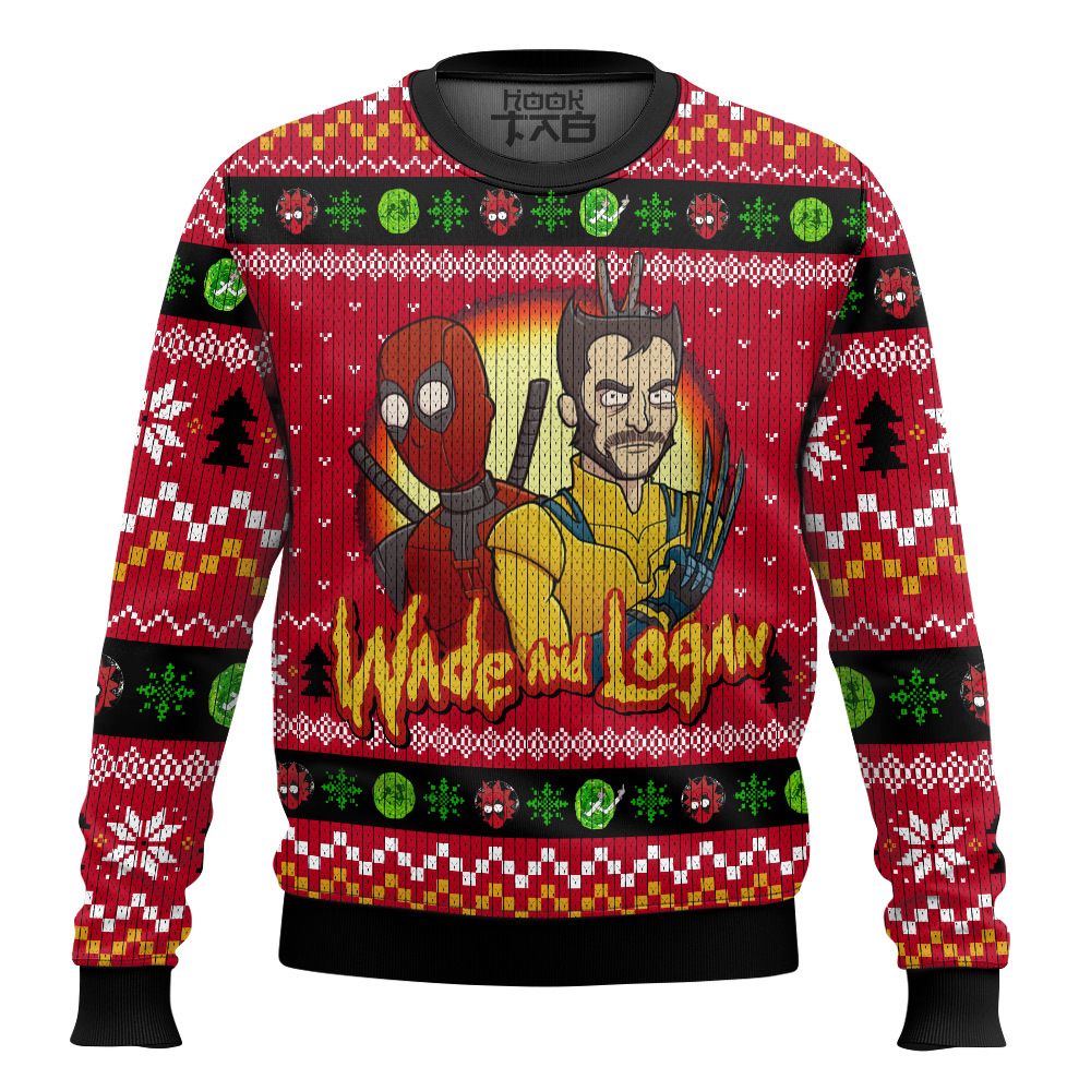 Hooktab Wade And Logan Deadpool & Wolverine Ugly Christmas Sweater