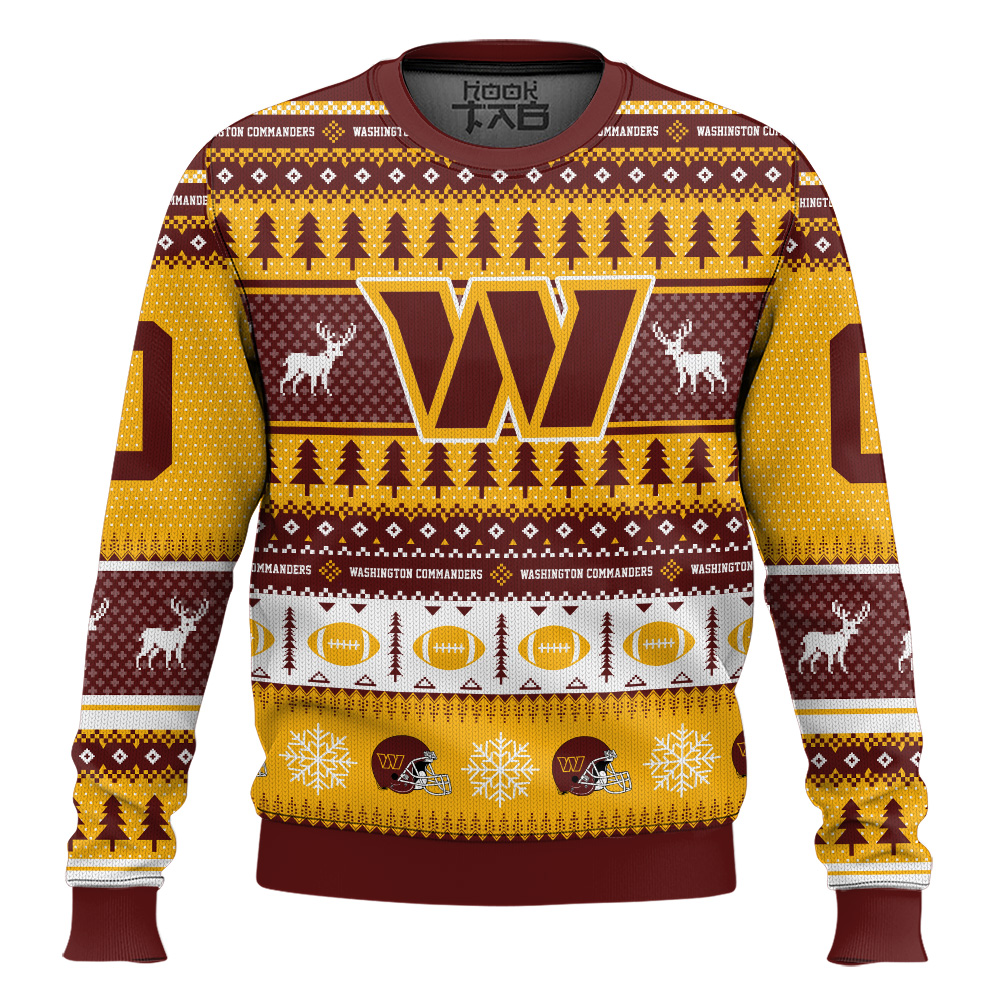 Hooktab Washington Commanders – Custom Name And Number Ugly Sweater