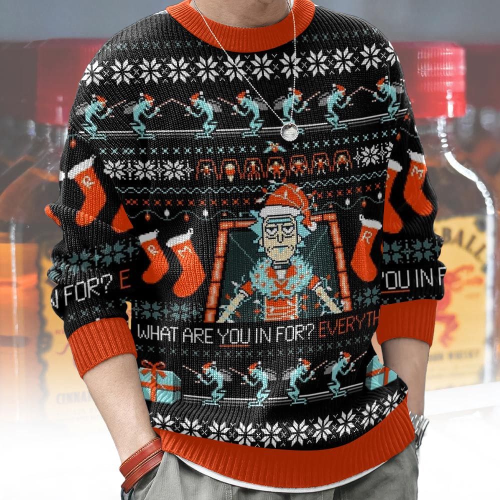 Hooktab What Are You In For? Everything Rick And Morty Ugly Christmas Sweater