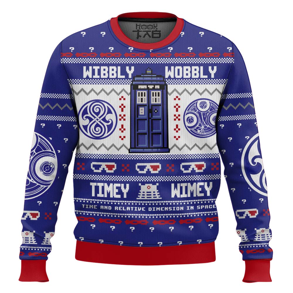 Hooktab Wibbly Wobbly Timey Wimey Doctor Who Ugly Christmas Sweater