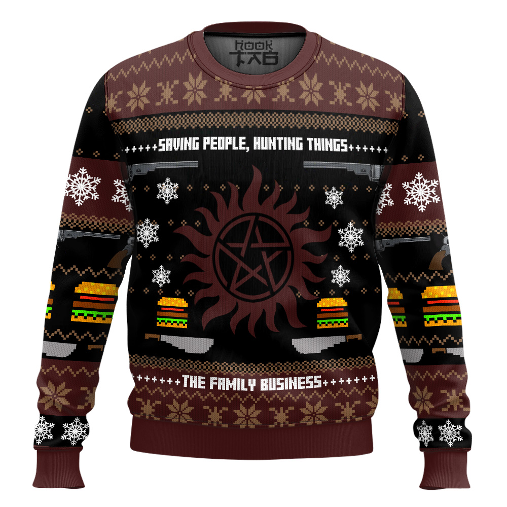 Hooktab Winchester Family Business Supernatural Ugly Christmas Sweater