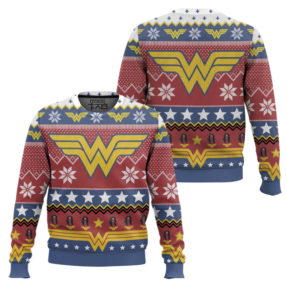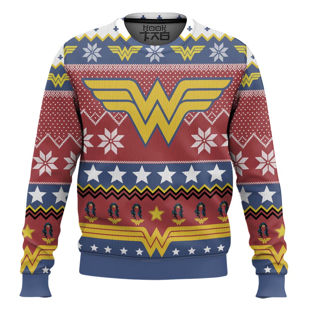 Hooktab Wonder Woman Logo Ugly Christmas Sweater