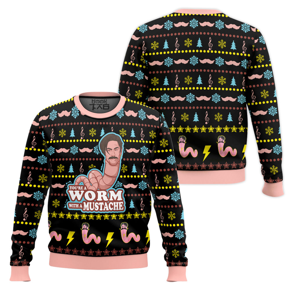 Hooktab Worm With A Mustache James Kennedy Ugly Christmas Sweater
