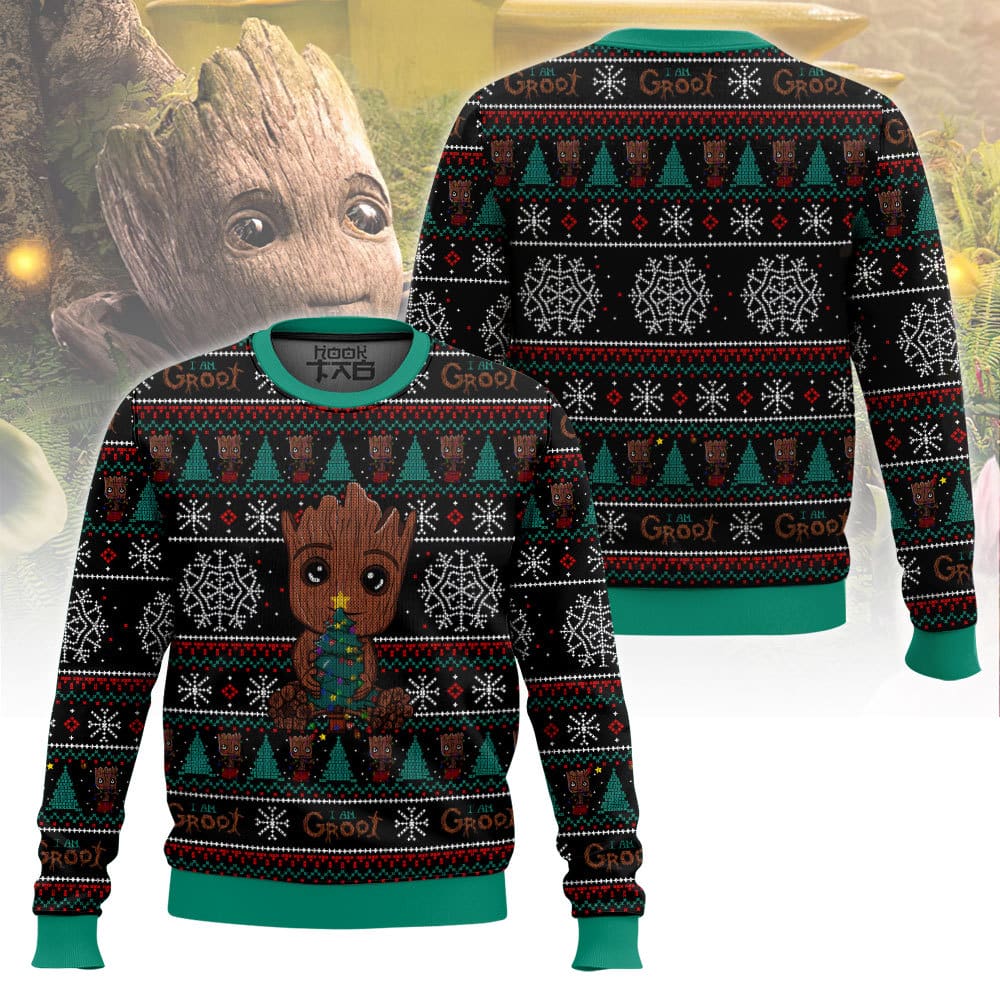 Hooktab Xmas Groot Marvel Ugly Christmas Sweater