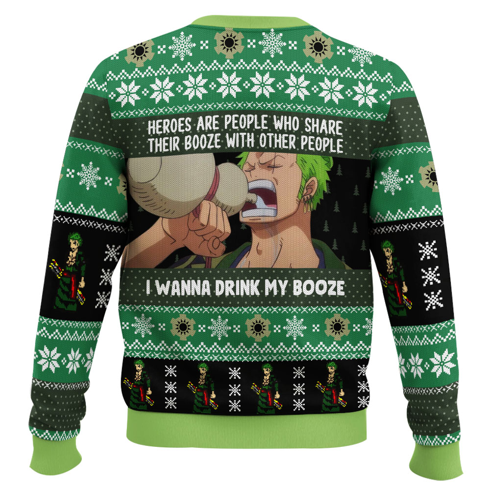 Hooktab Zoro I Wanna Drink My Booze One Piece Ugly Christmas Sweater